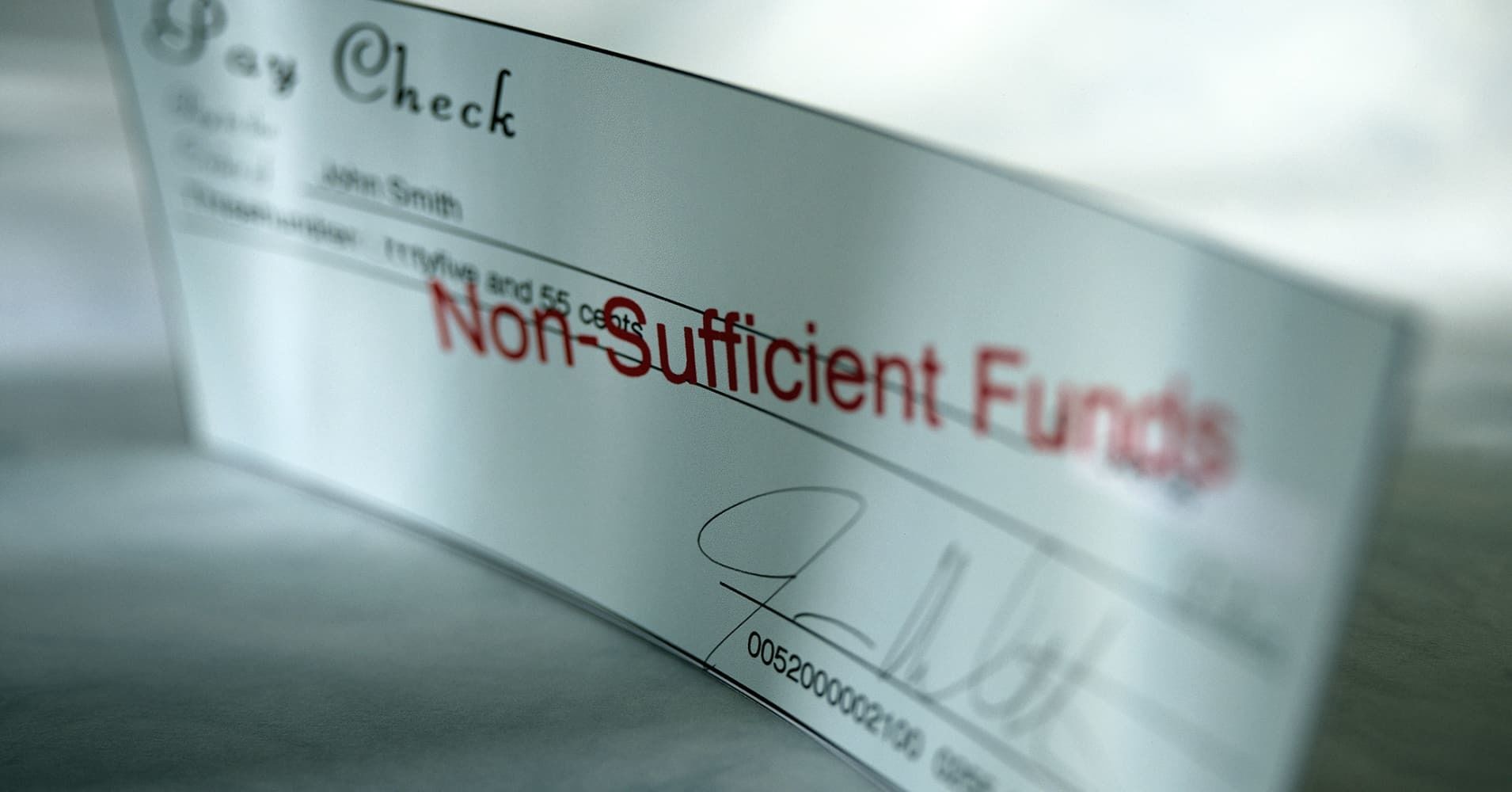 nonsufficient funds (NSF) | Drawer's account lacked sufficient funds to pay written amount of check |