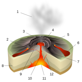 | A vent in Earth's Surface made of lava and volcanic ash, which erupts and builds up | Volcano |