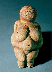 | Woman from Willendorf, Austria, c. 25,000-20,000BCE 4 inches tall. Unknown use – maybe ceremonial, maybe fertility. Very healthy – lots of fat. Female body parts are emphasized, not the face: so, not an individual. Called often Venus, which is not accurate b/c we don’t know her function and we KNOW her culture was not Roman. | |