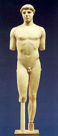 | Kouros, from the Tomb of Kroisos, c. 520 BCE. | |