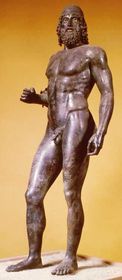 | Riace Bronze, c. 460-450 BCE. Found in ocean in ‘70’s. Didn’t survive with his stuff. | |
