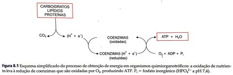 | Energia | A energia liberada nos processos de quebra de moléculas nutrientes orgânicos é conservada na forma de ATP e NADPH |