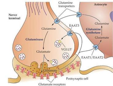 | EAAT | excitatory amino acid transporter glutamate --> glutamine energetically UNfavorable |