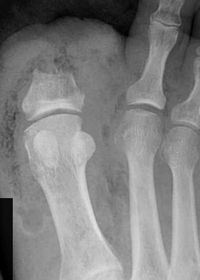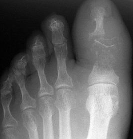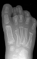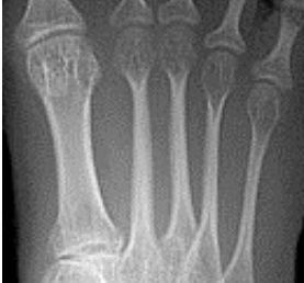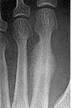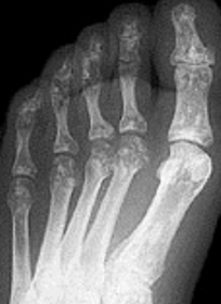 What disease is this? | Atrophic forefoot neuropathy (diabetic osteolysis) |