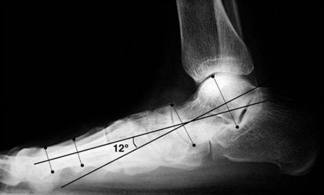 What foot type does this calcaneal inclination angle indicate? | Pes plano-valgus |