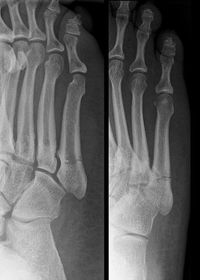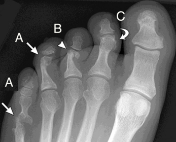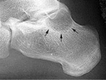 Describe what is occurring at the head of the 3rd met | Freiberg’s infarction (avascular necrosis of the metatarsal head) |
