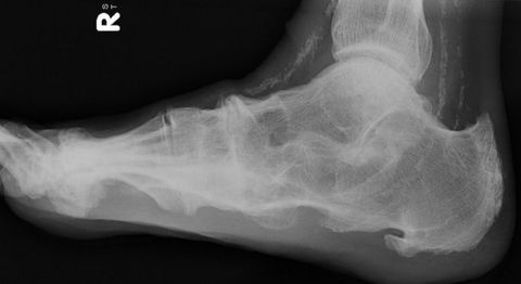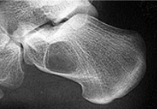 What type of lesion is this? | Moth eaten and permeative (mixed increased and decreased density throughout the entire calcaneus) |