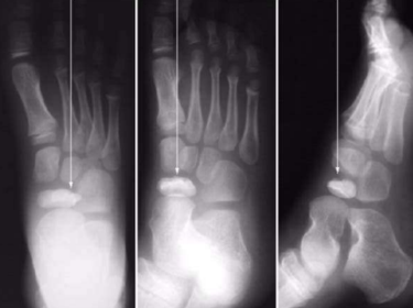 What is this? What type is it? | Accessory navicular (Os tibiale externum) Type 1: Sesamoid in the tendon |
