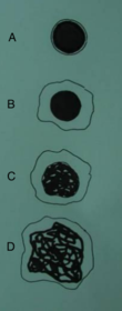 Describe the patterns of destruction in A, B, C. Which is more malignant? | A = geographic destruction B = moth eaten destruction C = permeative destruction Malignancy = C>B>A |