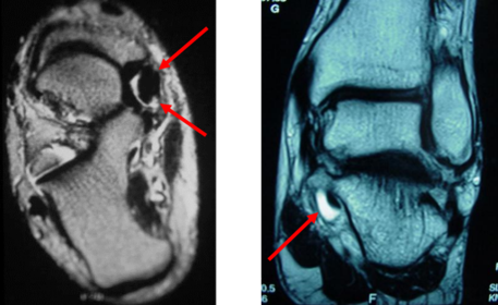 What does this show? | Ganglion in lateral ankle soft tissue |