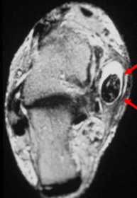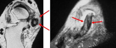 What do the arrows indicate? | Tendon Dysfunction – Functional Rupture |