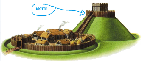 | Motte | A mound of earth with steep sides and a wooden castle on top |