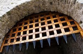 | Portcullis | A heavy gate in the curtain wall surrounding a castle |