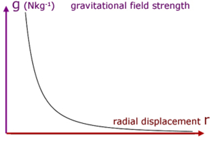 In a radial field g is ... | inversely proportional to r^2 |