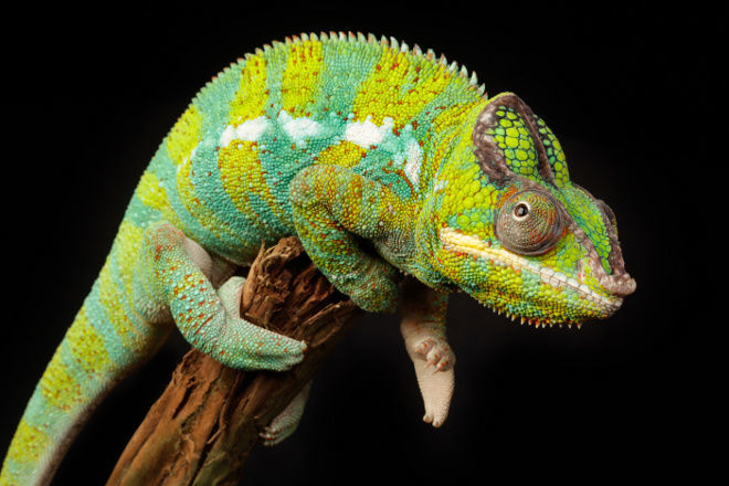 Ten gad się niczym nie zasłania, chociaż jest mistrzem maskowania, bo kiedy zechce, kolor zmienia przyjmując barwę otoczenia. | |