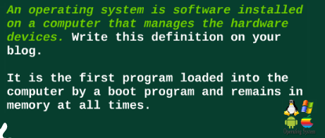 | Provides file management | A file system is the methods and data structures that an operating system uses to keep track of files on a disk or partition; that is, the way the files are organized on the disk. |