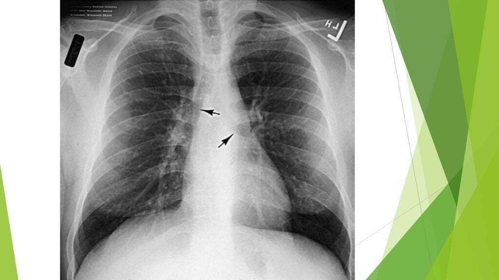 Alargamento do mediastino -Focal: massas, tumores, linfonodos -Difuso: hemorragia, infecção Difusa comprime, focal desloca |