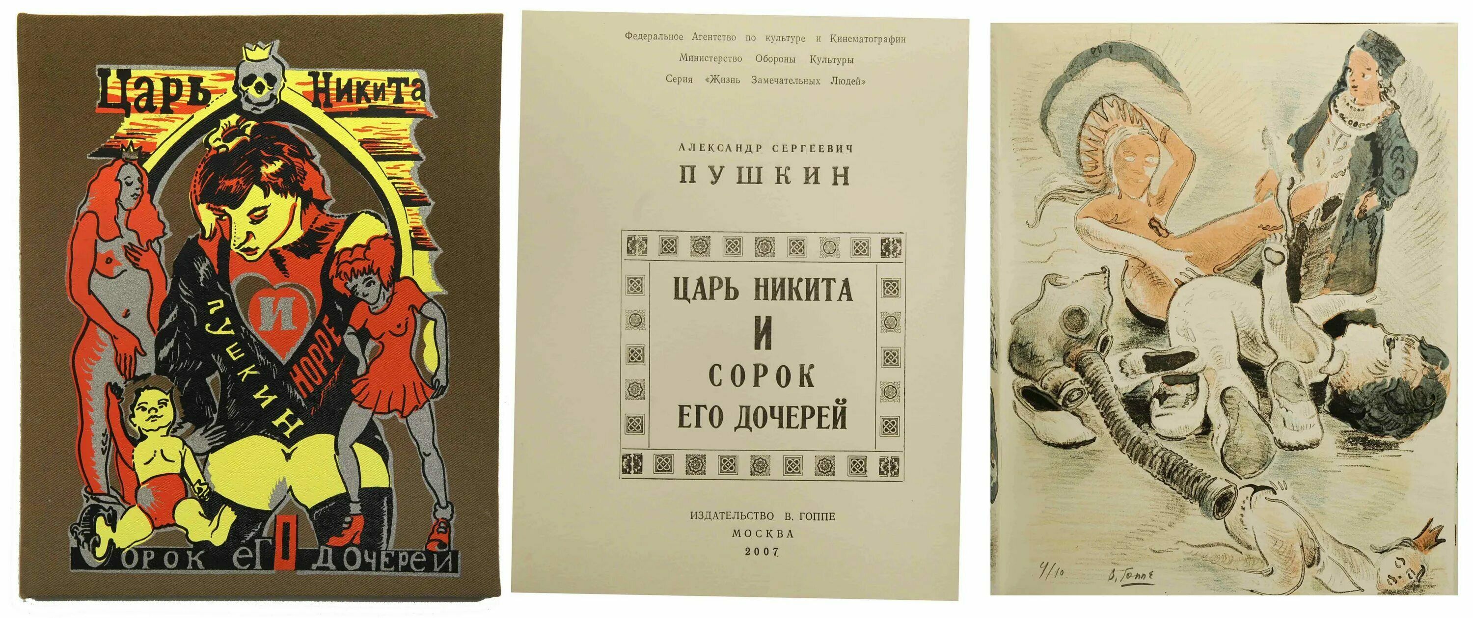 Шуточная сказка в стихах Александра Сергеевича Пушкина, написанная в 1822 году. Произведение долгое время было известно лишь по рукописным спискам. | «Царь Никита и сорок его дочерей» |