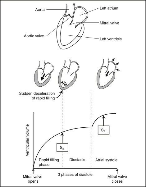 | ¿En qué fase del ciclo cardíaco se escucha S3? | Al final de la fase de llenado rápido de la diástole |
