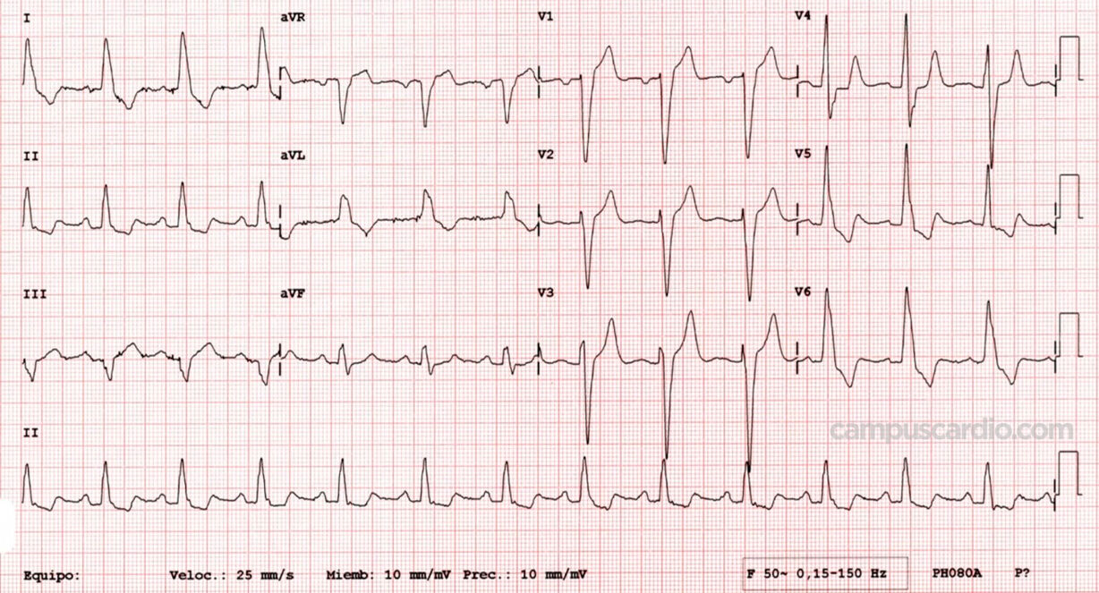 Taquicardia, arritmias como FA, buscar infartos anteriores o bloqueos de rama izquierda o AV, identificar hipertrofia ventricular izquierda