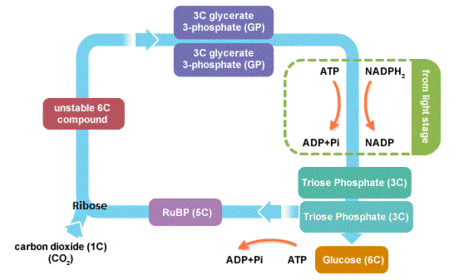 | What effect does having temperature as a limiting factor have on the light-independent reaction (the Calvin cycle)? | All the reactions in the Calvin cycle are catalysed by enzymes. At low temperatures, all of the reactions will be slower as the enzymes work more slowly. The levels of RuBP, GP and TP will fall as a result of this. RuBP, TP and GP are effected similarly by very high temperatures, because enzymes will start to denature. |