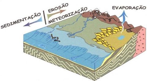 | Sedimentação- Conjunto de processos que levam à formação de sedimentos para a transformação de rochas sedimentares.( meterorização, erosão, transporte e deposição). | |