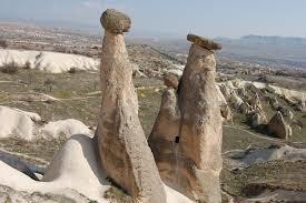 | As chaminés de fada formam-se a partir da ação erosiva das águas fortes em terrenos arenosos que podem atingir os 40 metros. | |