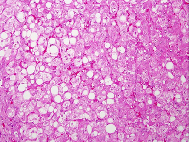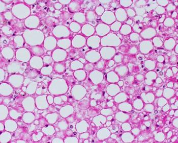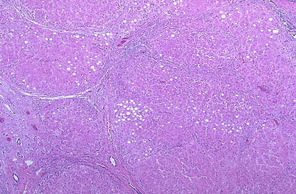 | TISSUE TYPE: preserved liver PATHOLOGY: vacuoles of fatty subestance DIAGNOSIS: liver steatosis KEY: VACUOLATION | |
