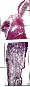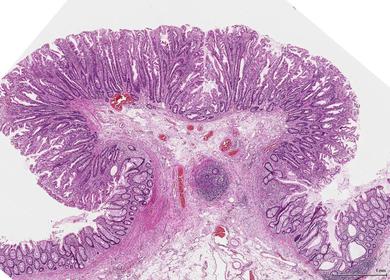 | TISSUE TYPE: villi of intestine PATHOLOGY: protrusion of mucosa and submucosa upwards.. bilharizial ova in sub. DIAGNOSIS : bilharizial intestinal polyp KEY: TREE LIKE PROTRUSION.. | |