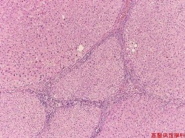 | TISSUE TYPE: O.o (loss of architecture) PATHOLOGY: thick fibrous speta with inflamatory cells .. separate nodules of undefined cells. (steatosis) Diagnosis: liver cirrhosis xD KEY: CAN'T SEE ANY SPECIAL THING ABOUT LIVER CAUSE ACTULLAY IT'S DEAD :D | |