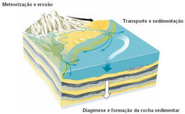 | Rochas sedimentares | As rochas sedimentares são compostas por sedimentos transportados pela água, gelo ou vento e acumulados em depressões na crosta terrestre. |