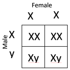 Draw a genetic diagram to show that the percentage chance of 2 parents producing male or female offspring is 50% |