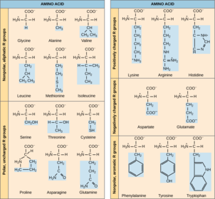 General Properties : Polar, uncharged R | 1. Zero charge at neutral pH 2. Can form hydrogen bond 3. Cysteine forms disulfide bond |