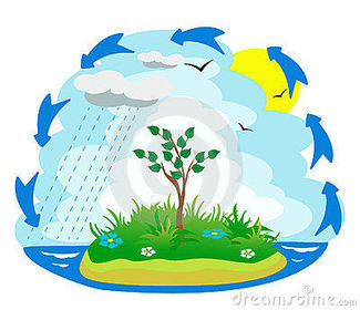 | El agua de océanos y lagos se evapora. El vapor sube a la atmósfera y se condensa en diminutas gotas de agua, dando origen a las nubes. Cuando esas pequeñas gotas se enfrían, se condensan (se unen y forman otras más grandes) y su peso las hace caer como lluvia, pero si se enfrían de manera muy rápida, se solidifican y caen como nieve o granizo. | Una parte del agua de lluvia que cae, se infiltra en la tierra y reabastece los mantos acuíferos (reserva de agua dulce que está a unos centímetros de la superficie terrestre o a varios metros de profundidad) y manantiales, otra parte de la lluvia forma los arroyos y ríos. |