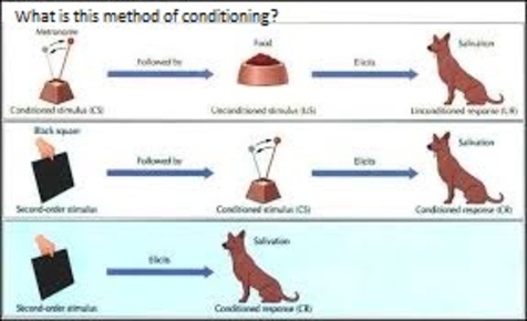 | Higher order conditioning | Once a CS-US association has been established the CS can be used to condition further stimuli |