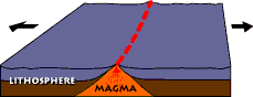 | Results from a Divergent Boundary | 1. Lava spews from long fissures and geysers spurt superheated water. 2. Frequent earthquakes strike along the rift. 3. Beneath the rift, magma—molten rock—rises from the mantle. 4. It oozes up into the gap and hardens into solid rock, forming new crust on the torn edges of the plates. 5. Magma from the mantle solidifies into basalt. 6. Oceanic crust, made of basalt, is created. |