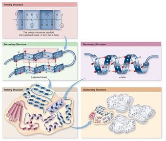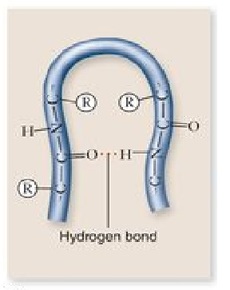 | Secondary structure | In a protein, hydrogen-bonding interactions between —CO and —NH groups of the primary structure. |