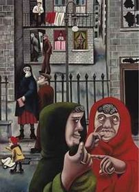 | This painting is of the Gorbals in Glasgow painting around 1930-31 by Edward Burra. What can you find out about the area and people from this picture? Next compare it with the next flash card. | |
