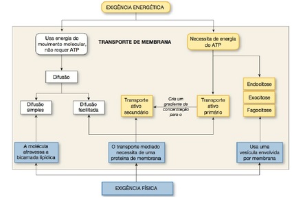 | Transporte ativo | processo que transporta as moléculas contra seu gradiente de concentração. Requer gasto de energia. |