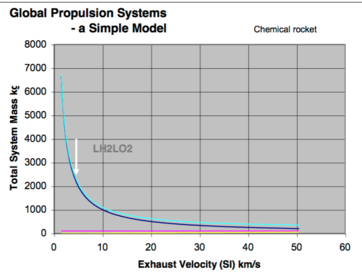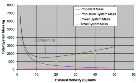 | On an Exhaust Velocity SI km/s vs Total System Mass kg, where is the Optimum SI | |