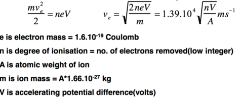 | What does Energy/impulse equal? | E/P=1/2*Ve^2 |
