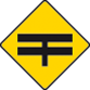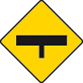 Enter text here... | T Junction ahead with roads of less importance (the latter being indicated by arms of lesser width) |