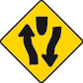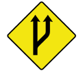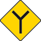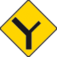 Enter text here... | Y Junction ahead with roads of less importance (the latter being indicated by arms of lesser width) |