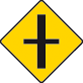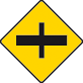 Enter text here... | Crossroads ahead with roads of less importance (the latter being indicated by arms of lesser width) |