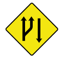 Enter text here... | Road narrows on both sides |