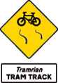 Tram lane crossing ahead | |