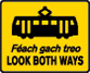 Tram lane warning sign for pedestrians |