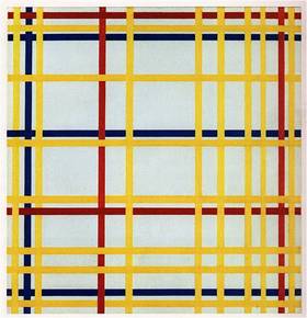 | Formalism | the study of art by analyzing and comparing form and style—the way objects are made and their purely visual aspects. In painting formalism emphasizes compositional elements such as color, line, shape and texture rather than iconography or the historical and social context. Piet Mondrian, Composition in Line, (1916-7). |