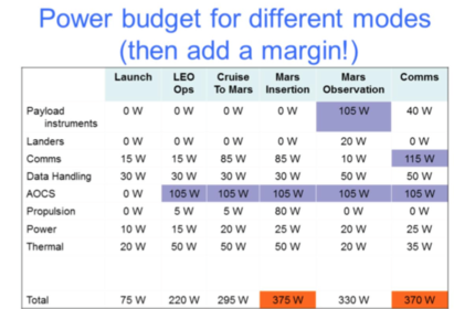 | What is the process for designing a power system? | Identify requirements Detailed power budget Select and size power source Size battery system Select regulation and control |