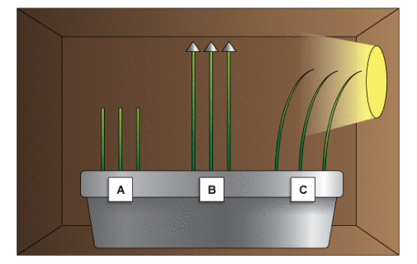 | The tropisms of shoots mean that the shoots are likely to grow into the air, where there is light for photosynthesis. The tropisms of roots mean that the roots are likely to grow into the soil, where there is moisture. | Auxins are a family of hormones found in plants. Auxins are mostly made in the tips of the shoots and roots, and can diffuse to other parts of the shoots or roots. They change the rate of elongation in plant cells, controlling how long they become. Shoots and roots respond differently to high concentrations of auxins: cells in shoots grow more cells in roots grow less. |